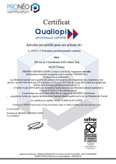 AIRVOLIA EF DRONE CAHORS MONTAUBAN ROUBAIX est certifiée DATA-DOCK et Qualiopi
